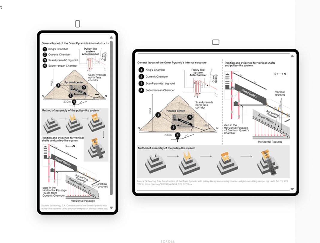 Design a responsive graphics system that keeps complex data readable on mobile while maintaining depth and efficiency for desktop publishing.